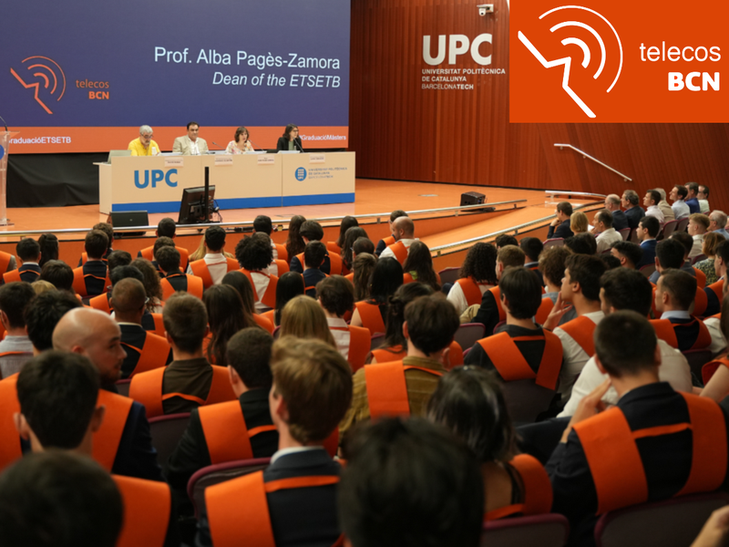 Divendres 20 de juny va tenir lloc l'acte de graduació de màsters de l'ETSETB, un acte de celebració i reconeixement que va reunir familiars, professorat, personal de l’escola i representants d’empreses i institucions, amb motiu de la graduació dels estudiants de diferents màsters: Master’s Degree in Telecommunications Engineering (MET), Master’s Degree in Advanced Telecommunications Technologies (MATT), Master’s Degree in Electronic Engineering (ME), Master’s Degree in Engineering Physics (MEF), Master’s Degree in Semiconductor Engineering and Microelectronic Design (MSEMD) i Master’s Degree in Cybersecurity (MCYBERS).