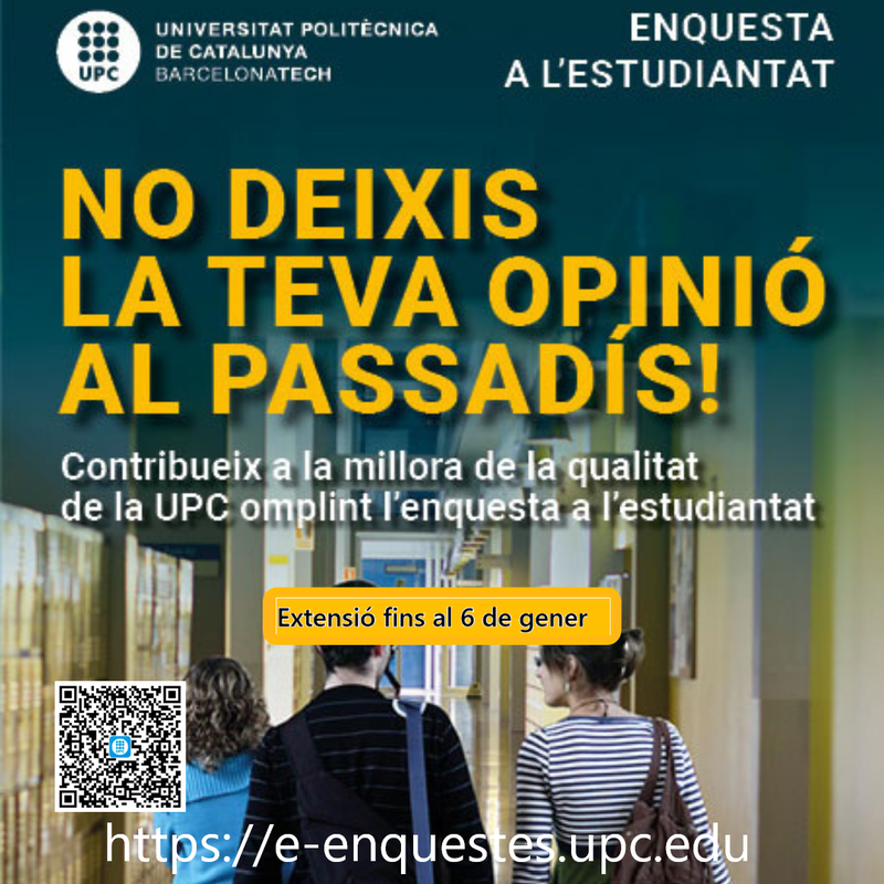 S'amplia el termini per respondre les enquestes de satisfacció sobre assignatures i professorat. La teva opinió és important per poder millorar la docència, per això t’animem a participar.